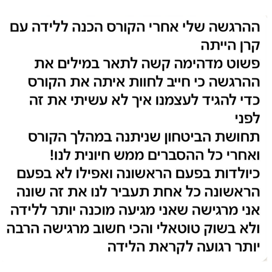 הקורס יעזור לך להבין לקראת מה את הולכת! מה את הולכת להרגיש, מה צריך לעשות בכל שלב, ואיך הולך להראות התהליך עם ההגעה לבית החולים