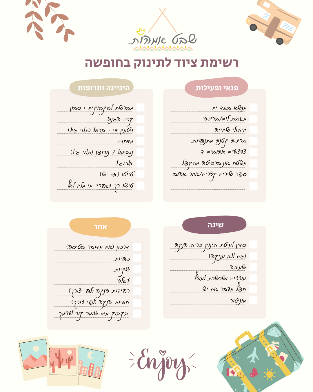 כדי שלא תשכחי כלום הנה הרשימה המלאה של מה שצריך לארוז לחופשה עם תינוק.